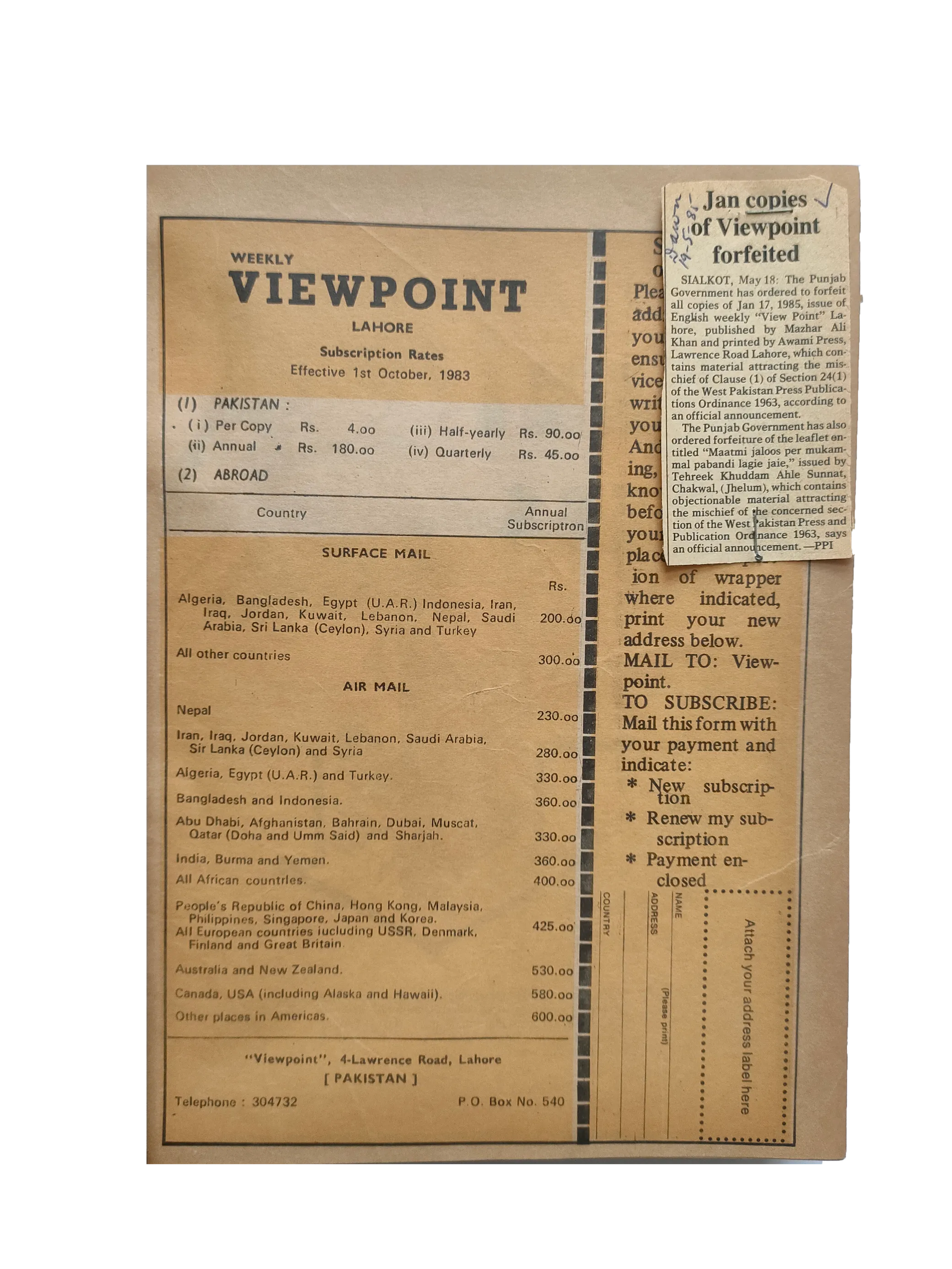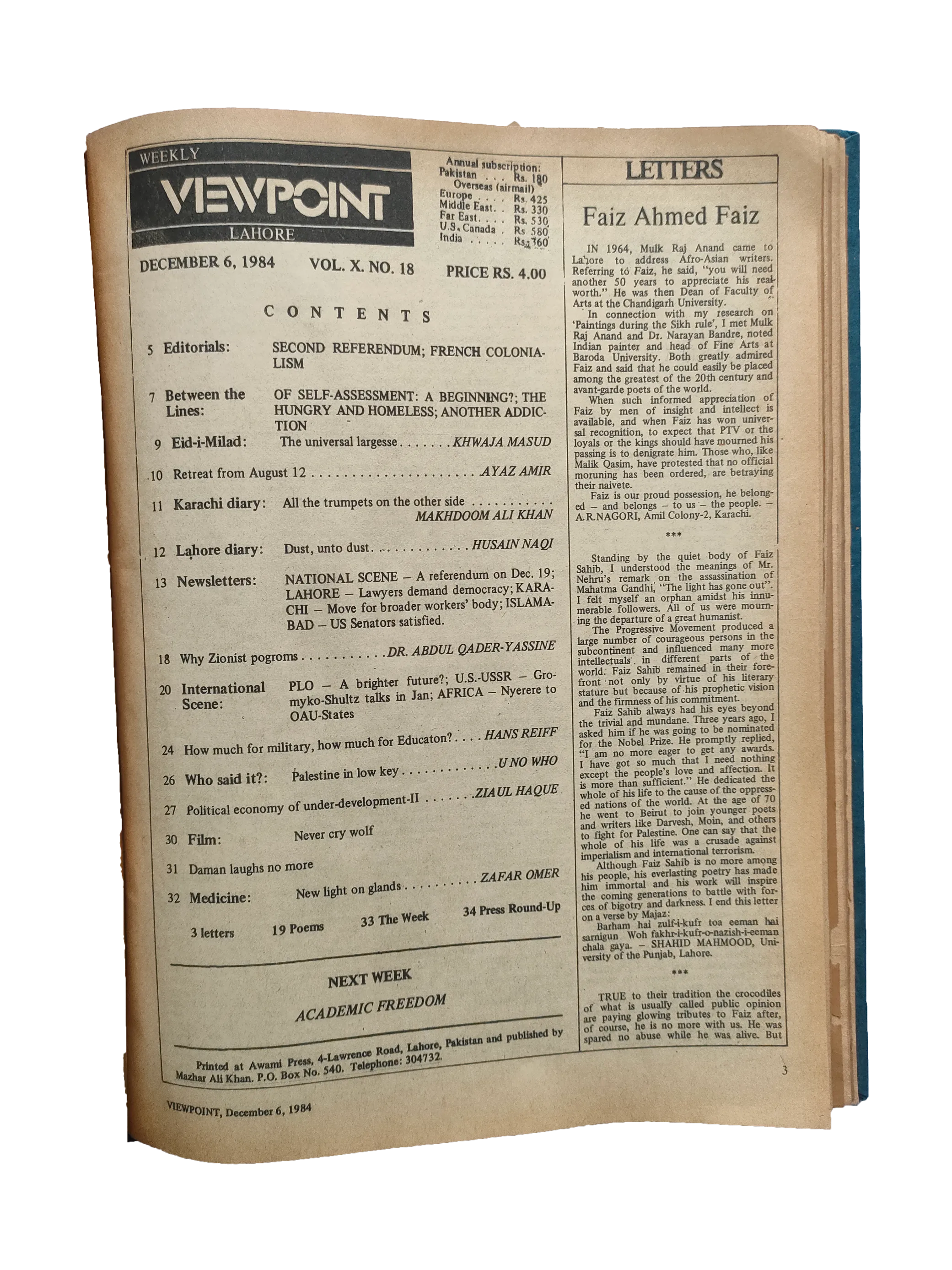 313 issues of Viewpoint Magazine (1984-89, English, Lahore)